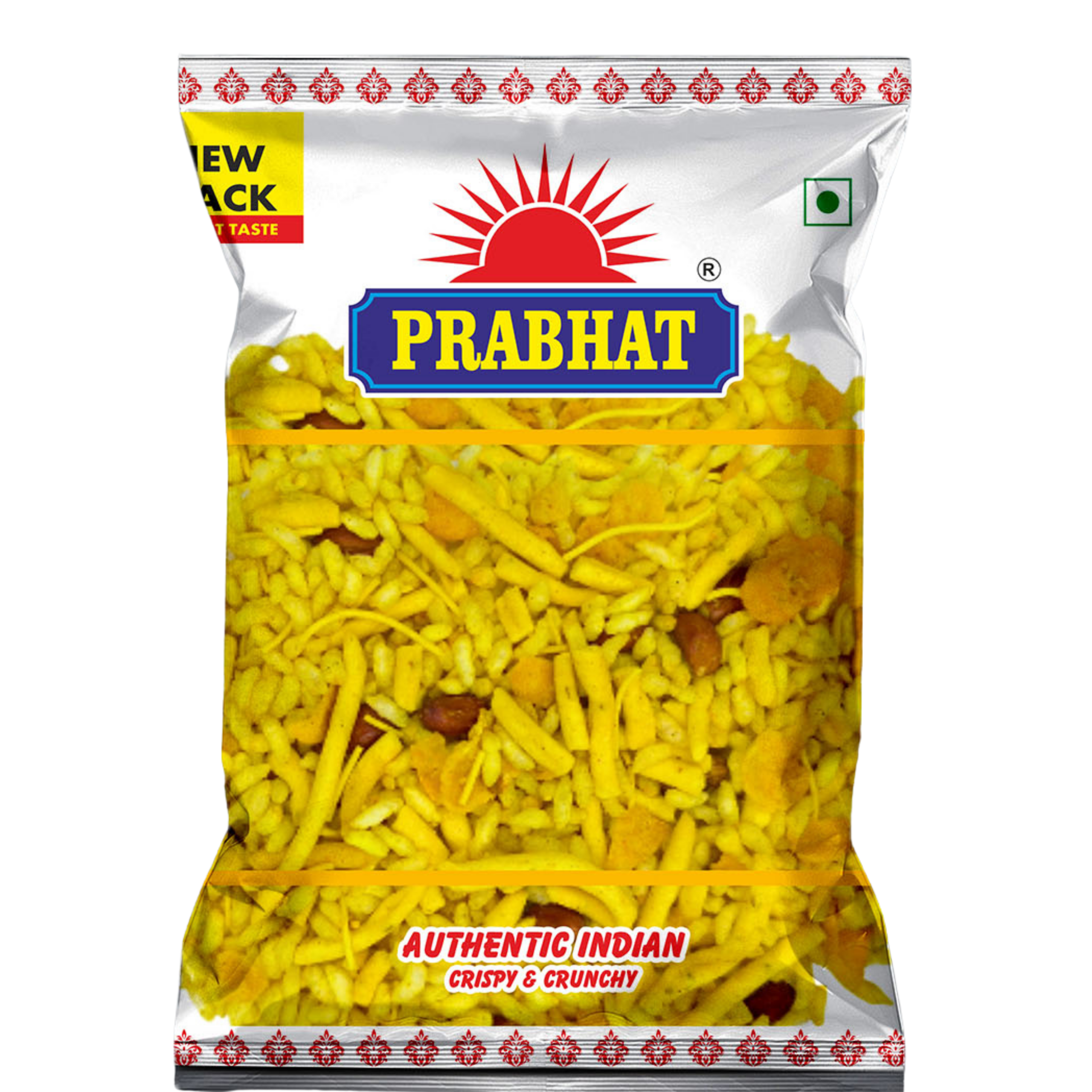 Prabhat Namkeen Bhelpuri is a flavorful blend of puffed rice, crispy ingredients, and traditional spices that bring the taste of Indian street-style chaat to your home. Each bite delivers a light crunch with a refreshing mix of tangy and spicy flavors.